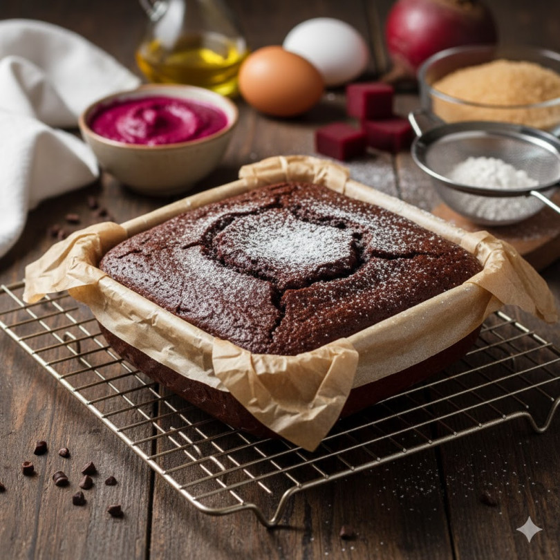 Начин на приготвяне: Цвеклото се пасира до гладко пюре. Яйцата се разбиват със захарта, добавят се олиото и пюрето от цвекло. Смесват се сухите съставки и се прибавят към течната смес. Тестото се изсипва в малка форма, покрита с хартия за печене, и се пече на 180 градуса около 30-35 минути. Получава се сочен, плътен сладкиш, в който цвеклото придава мекота и леко сладък вкус, без да доминира.