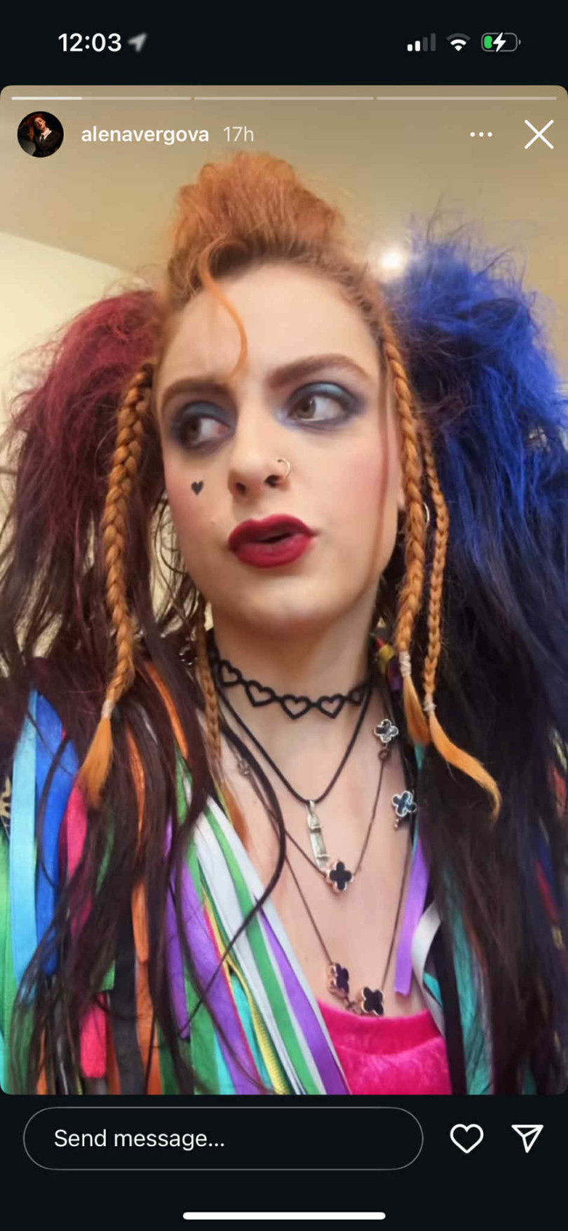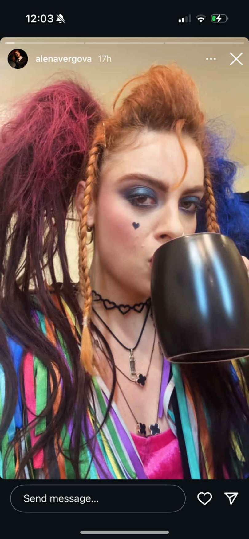 Наскоро тя записа първата си песен в дует с интернет сензацията, известна като „момчето в червено“, за когото в арт средите се говори, че е не само сценичен партньор, но и нейна половинка. Двамата вече заснеха клип към общото си парче „Нощта умира сама“, а визията на Алена по време на снимките също беше коментирана като „футуристична и безумна едновременно“.