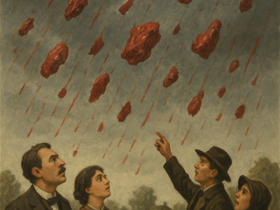 На 3 март 1876 г. жителите на Олимпиън Спрингс – малко селце в щата Кентъки, преживели нещо, което никой не можел да обясни. От ясно и спокойно небе започнали да падат парчета месо. Хората разказват, че червената, влажна плът се сипела върху покривите и дворовете им като странен, кървав дъжд.