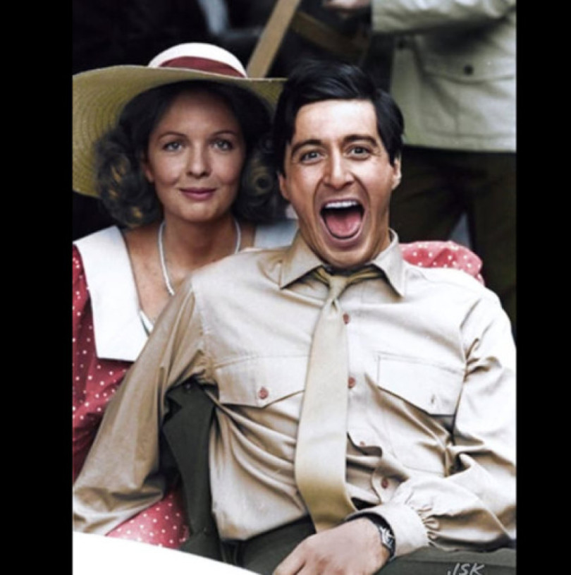 Кийтън бе негова екранна партньорка в класиката „Кръстникът“, където изигра ролята на Кей Адамс – съпругата на Майкъл Корлеоне (Пачино). Двамата започват връзка през 1974 г., а отношенията им продължават, с прекъсвания, близо две десетилетия.