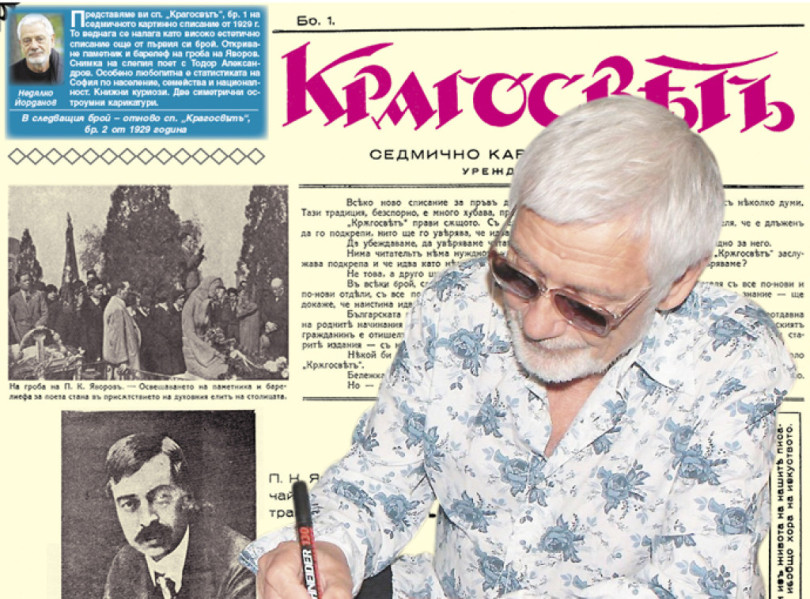 Представяме ви сп. “Крагосвeтъ”, бр. 1 на седмичното картинно списание от 1929 г. То веднага се налага като високо естетично списание още от първия си брой. Откриване паметник и барелеф на гроба на Яворов. Снимка на слепия поет с Тодор Александров. Особено любопитна е статистиката на София по население, семейства и националност. Книжни куриози. Две симетрични остроумни карикатури.