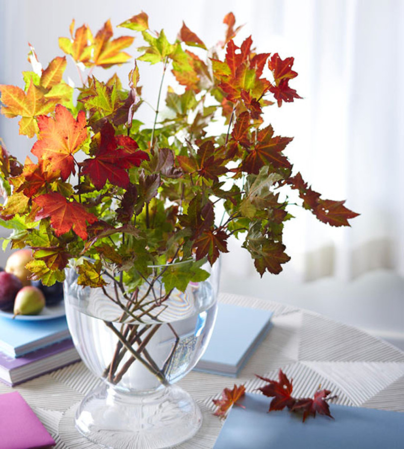 Декорирането на дома в духа на есента не изисква големи усилия или средства – достатъчно е да се доверим на природата и на собственото си въображение. Най-естественият начин да внесем есенна нотка е с букет от листа. Те могат да бъдат подредени в керамична ваза, поставени в голямо стъклено шише или дори просто събрани в кошница. Кленовите листа в червено и златисто, съчетани със сухи треви, клонки или жълъди, създават композиция, която сякаш пренася есенната гора в хола ни. Ако добавим и няколко малки свещи наоколо, светлината им ще подчертае топлите тонове и ще превърне аранжировката в истинска приказка.