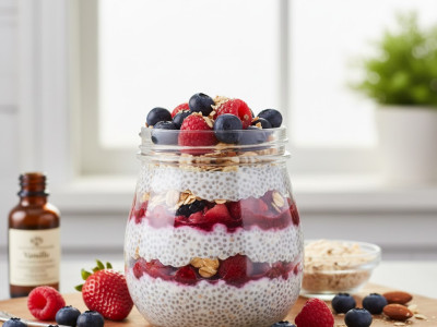 Начин на приготвяне: Киселото мляко се смесва с чиата, подсладителя и ванилията. Разбърква се добре и се оставя в хладилник за минимум 4 часа, най-добре за една нощ. Плодовете се намачкват леко с вилица или се затоплят за кратко на котлон, за да пуснат сок. В чаша или буркан се редят слоеве – чиа крем, плодове, ядки, отново крем. Преди сервиране се охлажда допълнително.