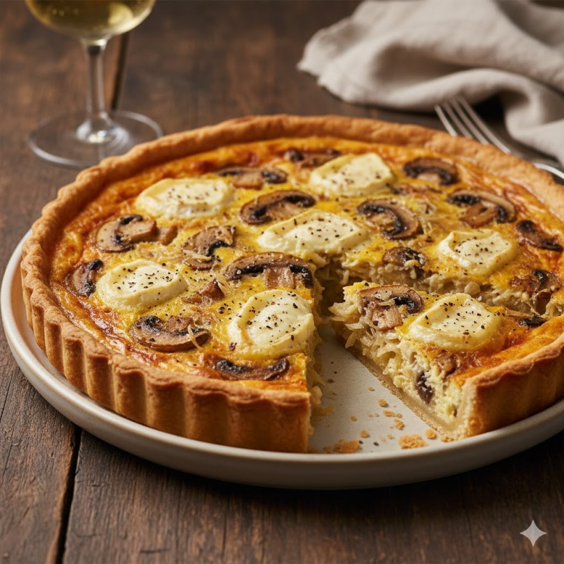 Тарт с гъби и козе сирене