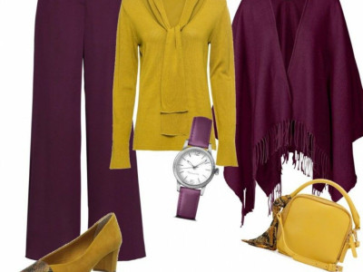 Лилавото в нюанс на теменужено или наситен аметист е сред водещите цветове на сезона. В комбинация с горчица се получава контраст, който стои изненадващо елегантно. Практичен пример: вталено лилаво сако с прав, леко разширен панталон в цвят горчица и неутрална блуза в екрю. Добавете кожена чанта в кафяво и обувки на стабилен ток – визията е модерна, но балансирана. За по-смелите дами – рокля в горчичен тон с лилав колан и обувки в същата гама.