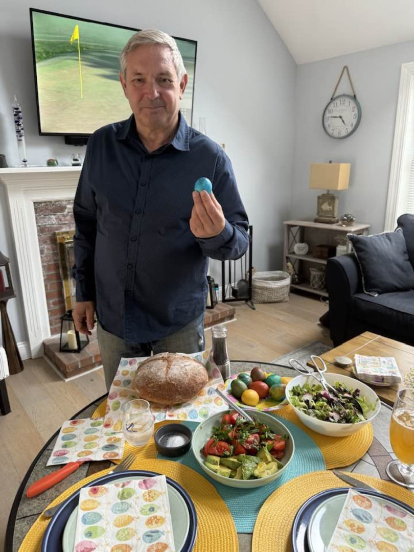 Синът на Гунди - Андрей Аспарухов, който живее в Щатите, позира със синьо яйце