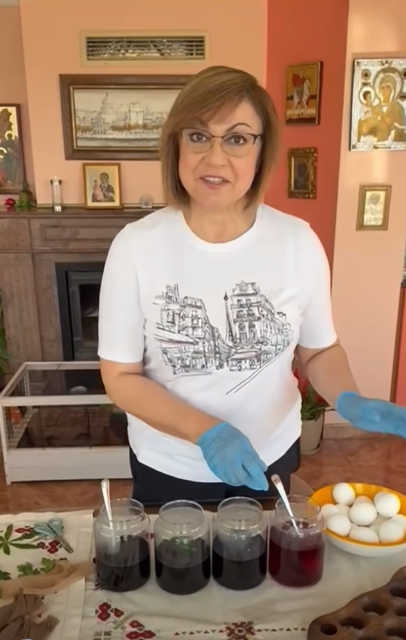 Корнелия Нинова също не изневери на обичаите и за пореден път демонстрира каква домакиня е, като си пусна видео във фейсбук. Тя боядиса яйца и омеси козунаци в родната Мизия, където събра майка си и свекърва си. Освен празничната подготовка Нинова се похвали и с необичаен подарък – живо бяло зайче.
