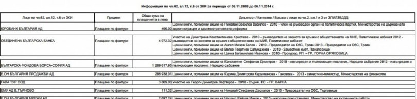 В писмото си от НПО-то се представят справка, изготвена от синдиците на КТБ, която може да се намери в цялост и на следния адрес - http://www.ktbfiles.com/wp-content/uploads/2016/05/Dogovori_konsultantski_naem_drugi.pdf: