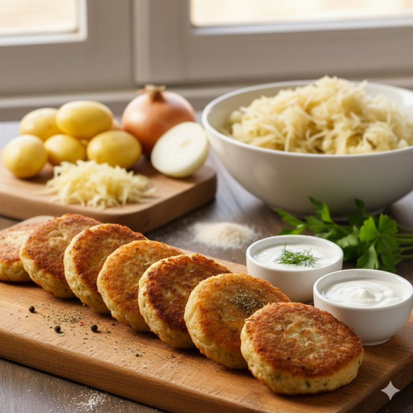 Начин на приготвяне: Киселото зеле се изцежда много добре и се нарязва на ситно. Картофите се сваряват, обелват и намачкват. Всички продукти се смесват в купа и се разбъркват до гъста смес. С влажни ръце се оформят малки кюфтенца, които се подреждат в тава, застлана с хартия за печене. Намазват се леко с олио и се пекат на 180 градуса около 30 минути, като се обръщат веднъж. Получават се ароматни, хрупкави отвън и меки отвътре кюфтенца, които вървят чудесно с кисело мляко или чеснов сос.
