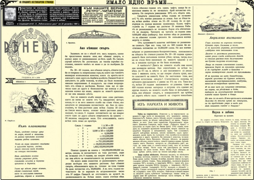 В този брой са публикувани стихотворения от младите тогава поети Йордан Стубел и Атанас Душков. Интересна статия като научна хипотеза - “Ако нямаше смърт”, любопитни факти из науката и живота - тайните на творчеството на известни музиканти и поети и предложение за домашен опит в рубриката “Наука и забава”.