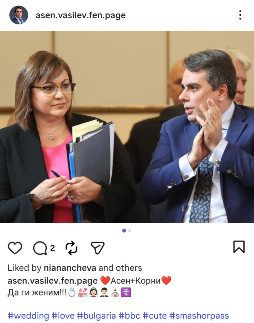 Фактът, че именно Бориславова е сред последователите на страницата, която се гаври с лидера на ПП, от една страна, учудва, тъй като нейният благоверен Мирослав Иванов е настоящ кандидат-депутат от ПП-ДБ. От друга обаче, публична тайна е, че Асен Василев отдавна недолюбва Лена Бориславова – още от огромния скандал „Парапетгейт“ с нея и Кирил Петков. Явно обаче чувствата им са взаимни. Самата Лена пък преди време обяви, че се отдръпва от активната политическа сцена, няма да е кандидат-депутат на предстоящите избори и се захваща с други дела.