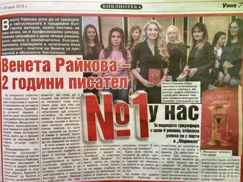 В "Уикенд" написали, че Венета Райкова е най-успешният български писател за последните две години.