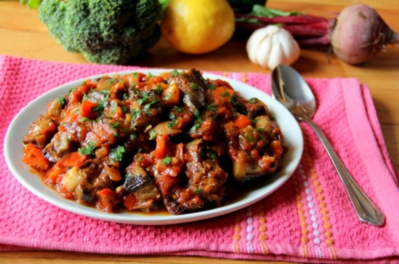 Необходими продукти: 3-4 патладжана, 150 мл олио, 2 глави кромид лук, 1-2 моркова, сол, 2 домата, магданоз, смлян черен пипер, галета.