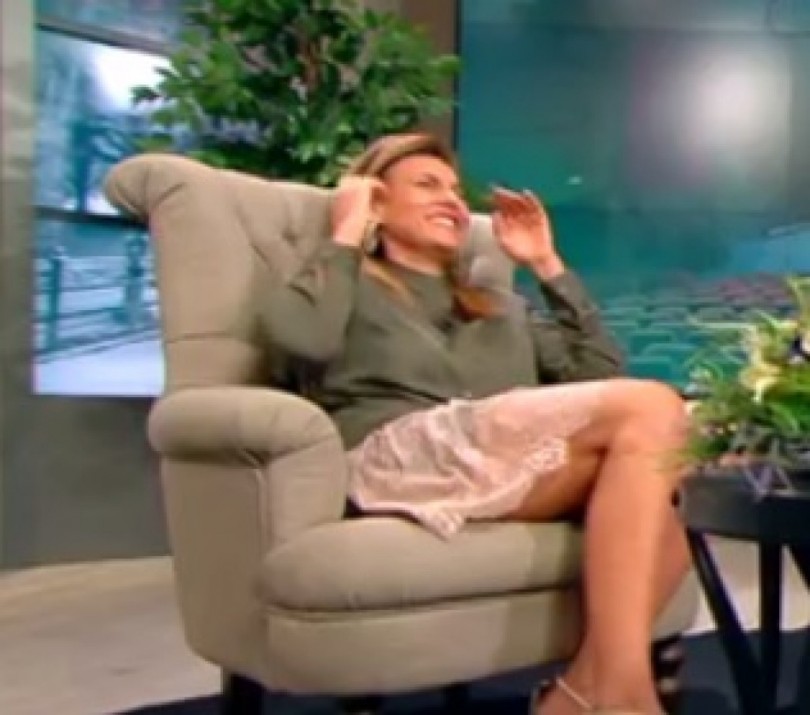 Актрисата, която от известно време се подвизава като водеща, зарадва окото на мъжките зрители, появявайки се с фриволна розова поличка от дантела. Прозрачната материя не остави на въображението почти нищо от изкусителното бедро на Любенова.