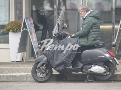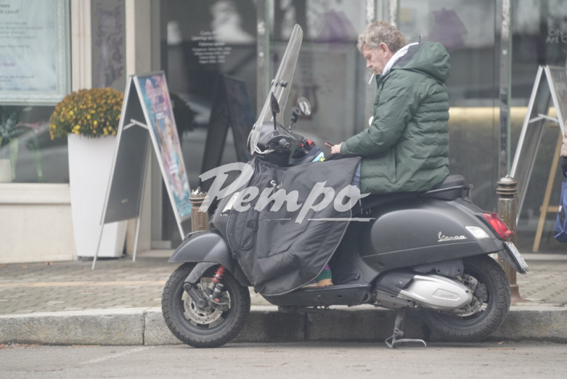 За да не вземе да настине, докато се прави на тийнейджър, 55-годишният актьор бе покрил краката си с професионално термопокривало – одеяло за скутеристи, което струва около 300 лева. Точно този модел е хит в Италия и Франция, където мотористите го използват, за да се предпазват от студ, дъжд и пътни пръски. Покривалото плътно обгръща краката, затопля ги като пухена завивка и позволява на собственика да лети по улиците, без да усеща минусовите градуси. Така актьорът, чийто девиз явно е „Никога да не остана незабелязан“, спокойно може да обикаля в студа на луксозното си возило като истински гъзар.