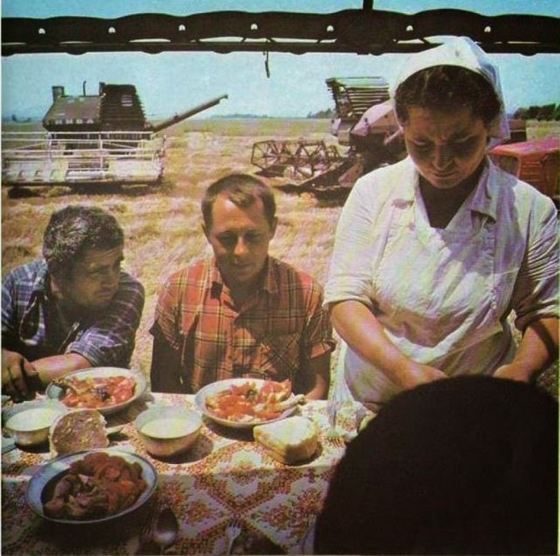 Неусетно дойде обяд. Донесоха баките с храна. Седнахме на сянка да обядваме. От стопанството донесоха топли баници и разни сладкиши.