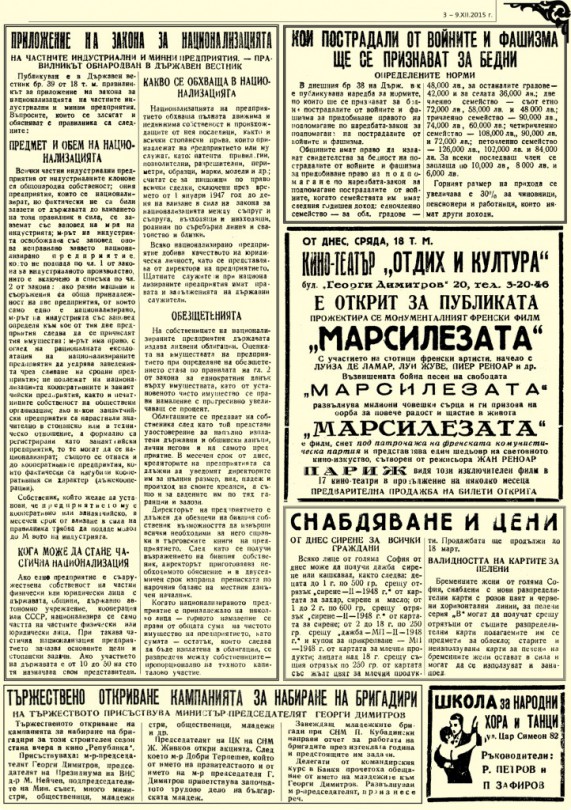 Вестник “Изгрев” от 18 февруари 1948 г. - орган на народен съюз “Звено”, е особено интересен със статията на Трайко Доброславски за конгресите на Отечествения фронт, в който все още членува партията на Кимон Георгиев - “Звено”. Информация за закона за национализацията и за пострадалите от фашизма, както и за реда на снабдяването с хранителни продукти.