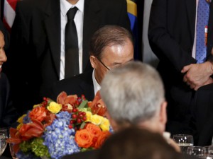 Барак Обама и Владимир Путин тази нощ се срещнаха очи в очи за първи път от близо две години. По време на разговорите си те постигнаха крехко съгласие да продължат разговорите по ключова тема, като Сирия, като отношенията между тях проличаха ясно от снимки, разпространени от световните агенции. Кадрите са направени по време на тост, който двамата вдигнаха по време на официалния обяд на лидерите на страните от ООН по призив на генералния секретар Бан Ки Мун.