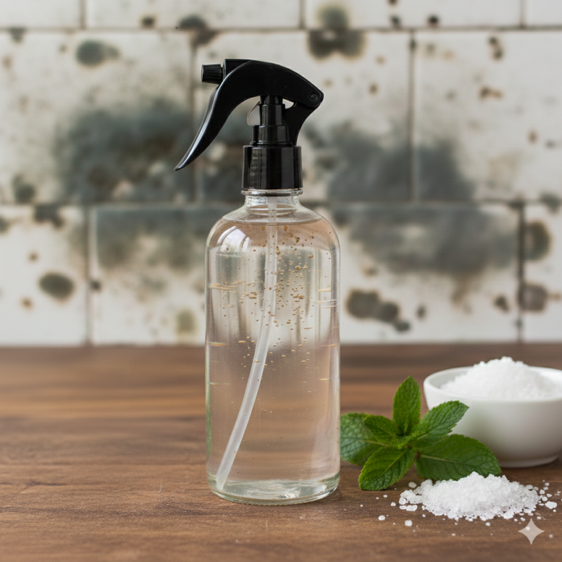 Как да го ползвате? Първо забършете видимия мухъл с кърпа за еднократна употреба, за да премахнете повърхностния слой. Напръскайте засегнатата област обилно с домашния спрей. Оставете го да престои и да подейства в продължение на поне един час (идеално 2-3 часа). След тава изтъркайте напръсканите повърхности с четка или гъба и забършете с чиста влажна кърпа.