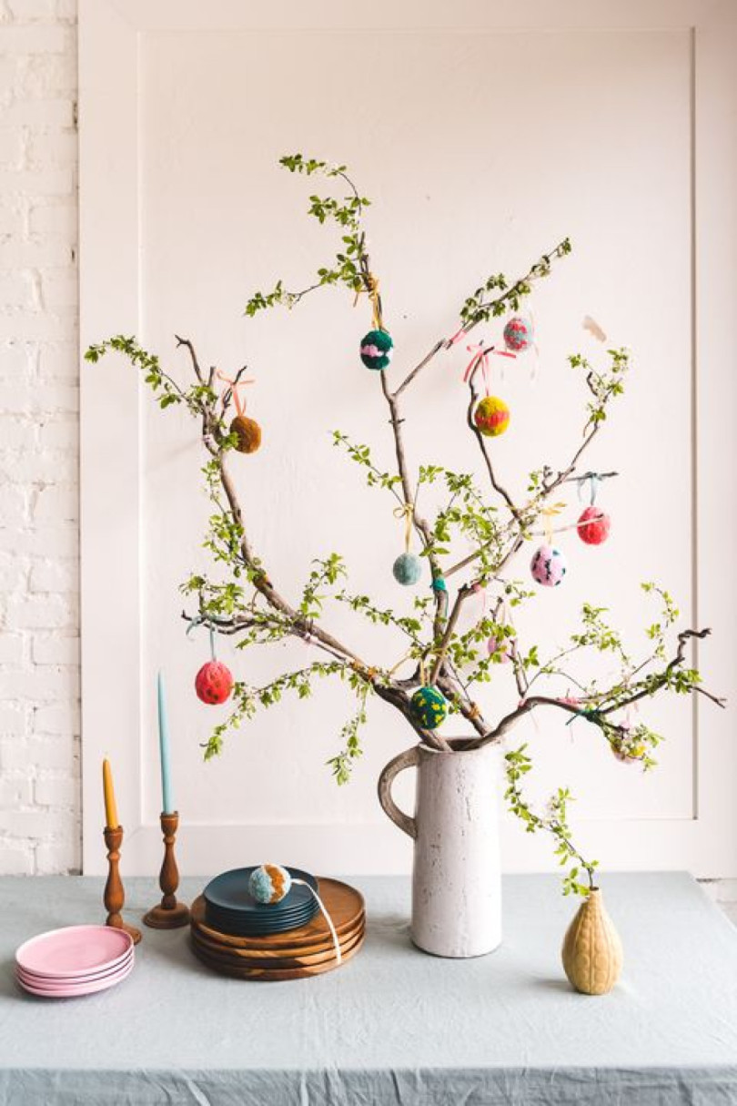 Клонки от върба се поставят във ваза и се използват като основа за декорация. Към тях се закачат боядисани, предварително изпразнени яйца, вързани с панделки или конец. Оформя се така нареченото великденско дърво – ефектен декоративен елемент, който може да бъде разположен в центъра на стаята или върху маса.