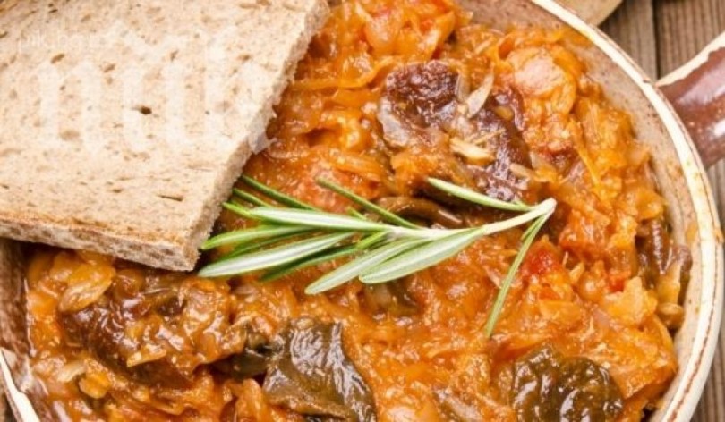 ПРОДУКТИ: 400 г телешки джолан (с кост), 300 г свински джолан (без кост), 500 г кисело зеле, 200 г сурова пикантна наденица, 100 г ориз, 40 г свинска мас, 1 л зелев сок, 2 стръка праз, 1 глава червено цвекло, 1 ч. л. черен пипер на зърна.