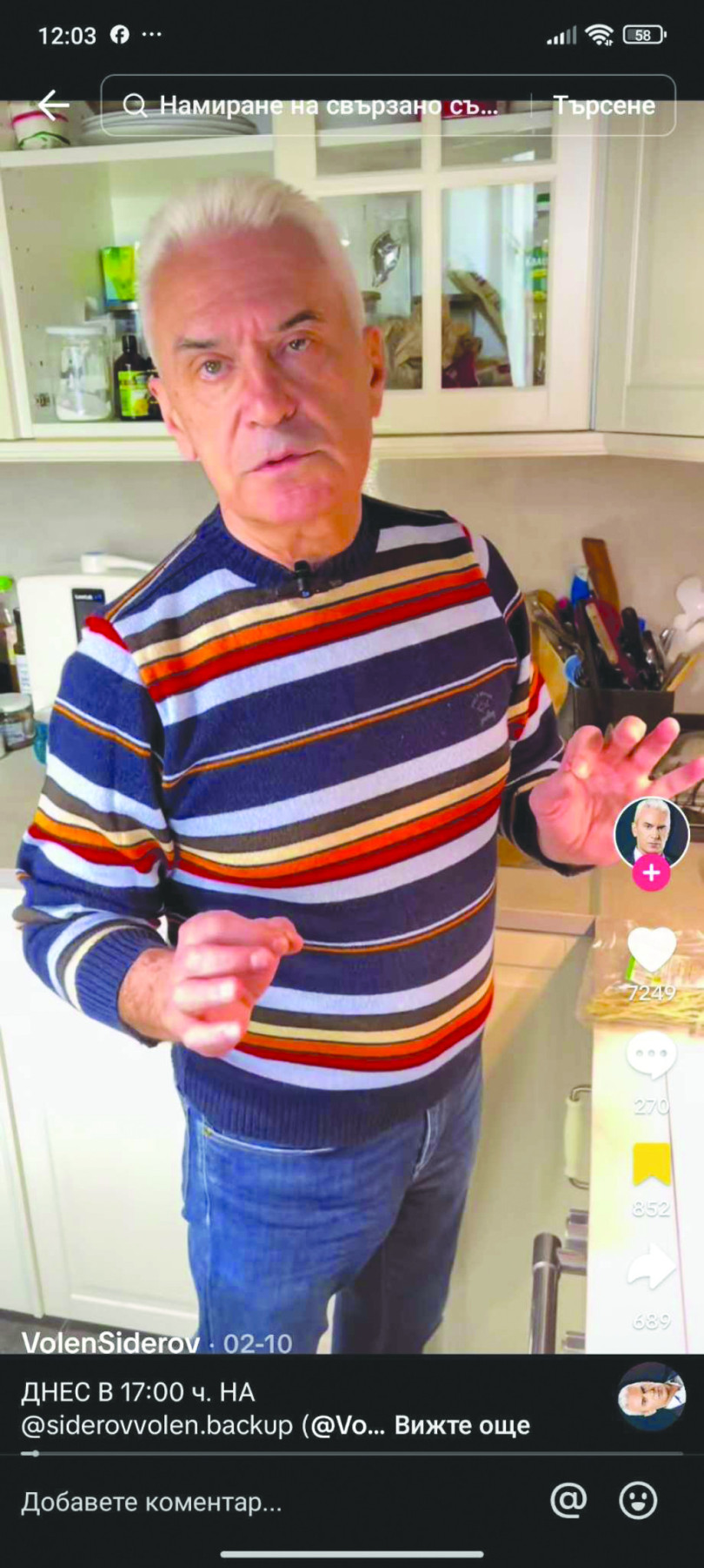 Волен Сидеров не спира да изненадва последователите си в социалните мрежи с клиповете, които публикува. Едно от най-култовите според поддръжниците му видеа е рецептата на „чай против отчаяние“, който лидерът на „Атака“ редовно консумира, когато се включва на живо в най-популярното сред младите онлайн приложение „ТикТок“.