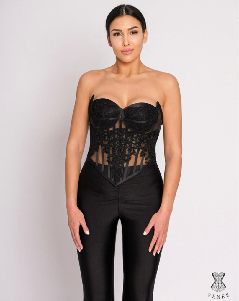На практика обаче брюнетката е заложила на едно – корсетите. Венцислава вече има онлайн бутик, макар и без сайт, без физически магазин и без обявени цени. Брандът носи името VENEE и се развива изцяло в социалните мрежи. До неотдавна в колекцията присъстваха само два модела – черни, силно вталени корсети с гръмките имена „Париж“ и „Казабланка“, изработени, по нейни думи, от висококачествени материали с фина дубайска дантела. И двата модела се предлагаха само в размери 36, 38 и 40 – тоест за фини и слабички дами.
