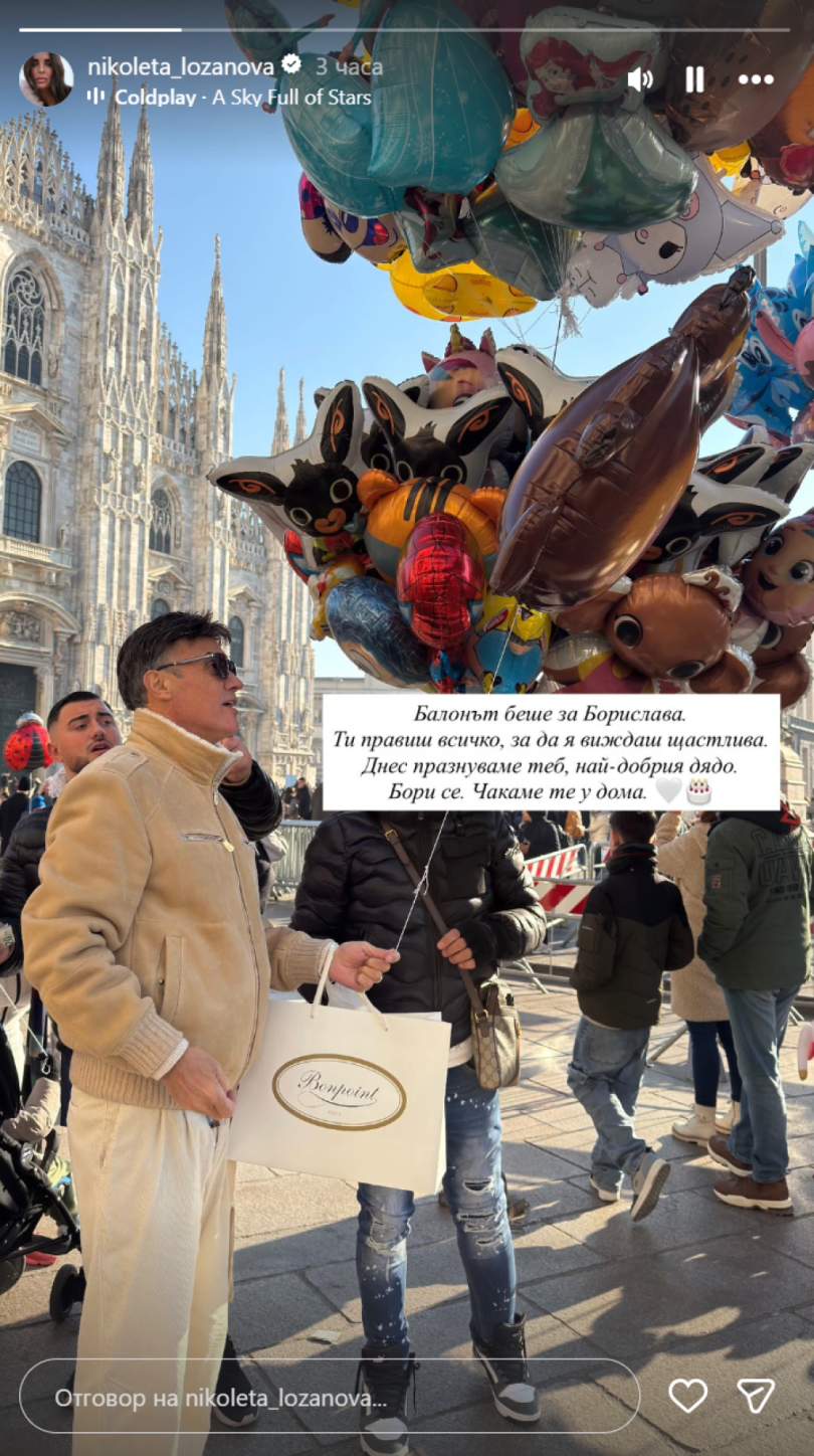 „Балонът беше за Борислава. Ти правиш всичко, за да я виждаш щастлива. Днес празнуваме теб, най-добрия дядо. Бори се. Чакаме те у дома“, написа Лозанова към снимка, която публикува.