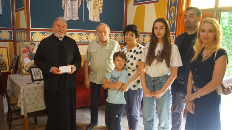 С внуците, сина Иван и снахата Жана. Миналата година семейството направи щедро дарение на храма в квартал Градоман в Банкя